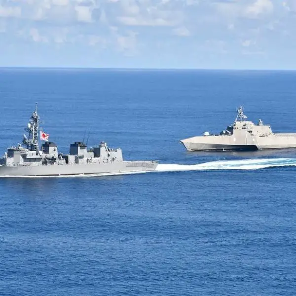 Japanese and US combat ships have conducted tactical drill in South China Sea