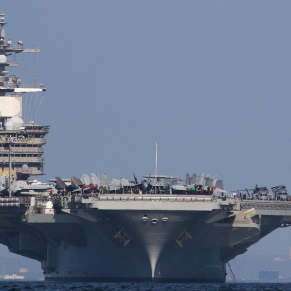 Nimitz-class aircraft carrier USS Carl Vinson arrives at Yokosuka Port