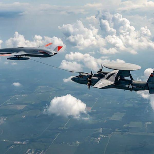 MQ-25 conducts air-to-air refueling with E-2D Advance Hawkeye aircraft for first time