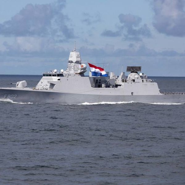 On May 19, 2021, during NATO naval exercise Formidable Shield, the Royal Netherlands Navy Air Defense and Command Frigate (ADCF) HNLMS De Zeven Pro...