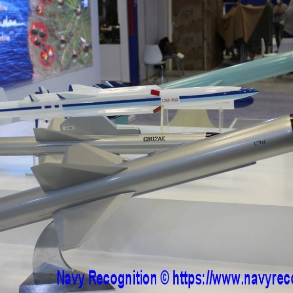 The China Aerospace Science and Industry Corporation showcases the CM-302 anti-ship cruise missile that is the export version of the YJ-1...