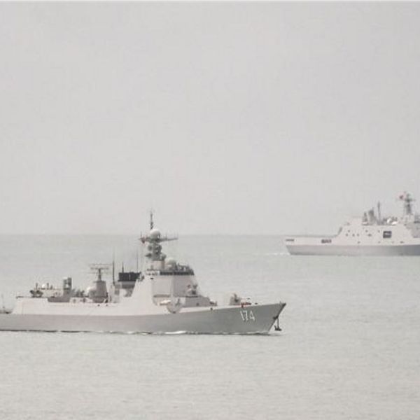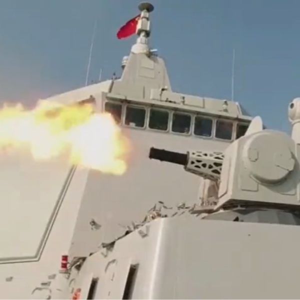 Chinese Type 055 destroyer Lhasa conducts live-fire exercise