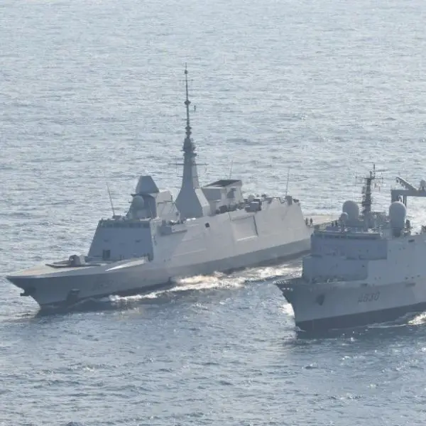 French Durance-class tanker Marne refuels FREMM Normandie in East Med