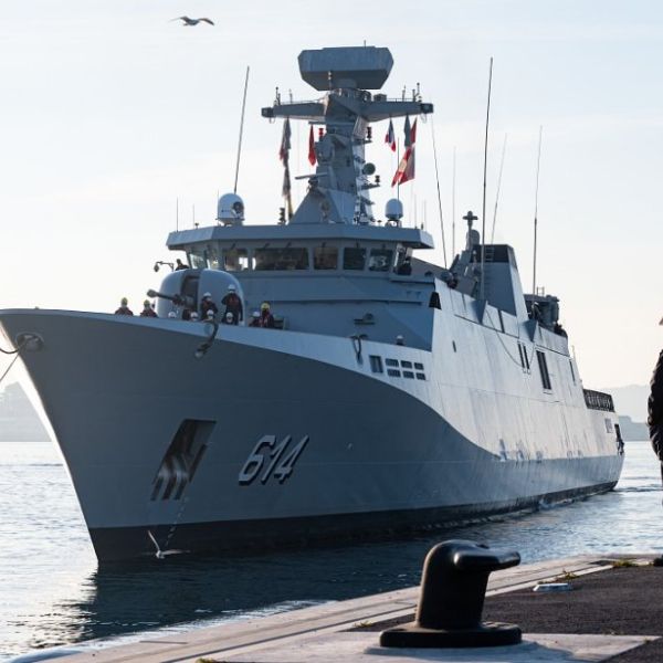 According to a tweet published by the French Navy on January 28, 2022, the Royal Moroccan Navy Sigma-class frigate Sultan Moulay Ismael makes a por...