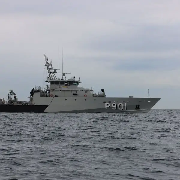 Belgian patrol boat Castor escorts Russian ships in the North Sea
