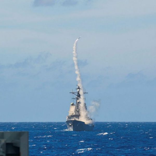 Australian destroyer HMAS Sydney fires Evolved Sea Sparrow Missile