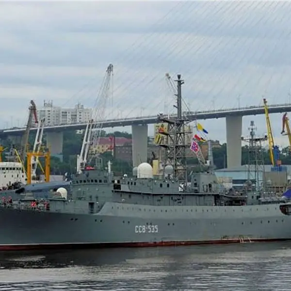 Russian Vishnya class intelligence ship Kareliya transits Japanese Strait
