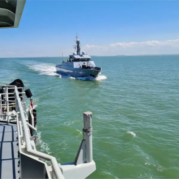 Belgian coastal patrol vessel BNS Pollux conducts exercise with France