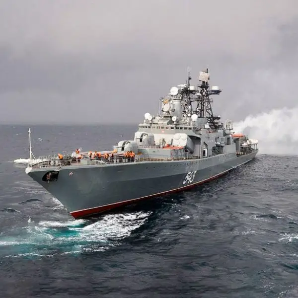 Russian destroyer conducts exercise in the East China Sea near Japan