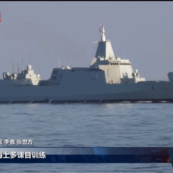 Chinese Navy's Type 055 destroyer Lhasa conducts drills in Sea of Japan