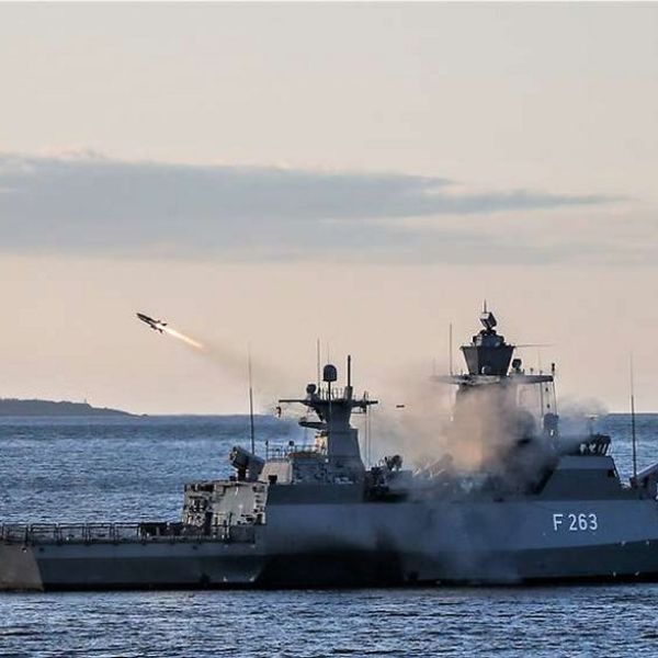 German corvette Oldenburg fires RBS 15 missiles for first time