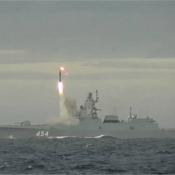 Russian Navy Admiral Gorshkov class frigate fires Zircon anti-ship hypersonic cruise missile