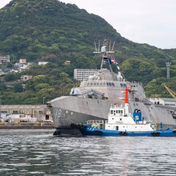 According to a tweet published by Ryan Chan on May 11, 2022, the US Navy littoral combat ship USS Charleston (LCS-18) arrives for a scheduled port ...