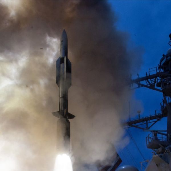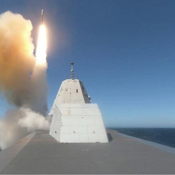 Zumwalt class destroyer USS Zumwalt fires Evolved Sea Sparrow missile