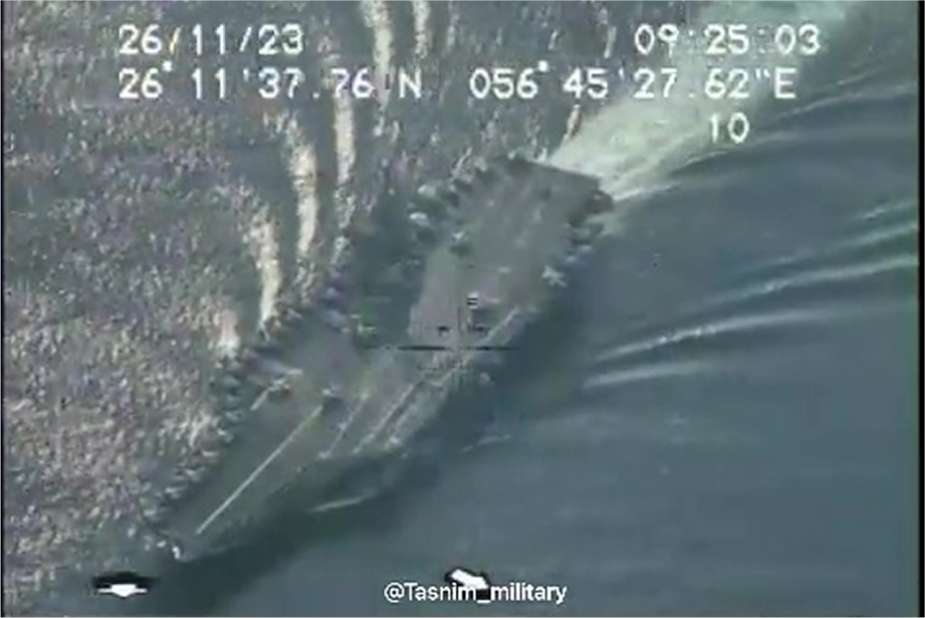 As reported by Iran Observer on November 28, 2023, Iran released footage showcasing the monitoring of the USS Dwight D. Eisenhower aircraft carrier by unmanned aerial vehicles (UAVs) as it transited the Strait of Hormuz. The Islamic Revolutionary Guard Corps (IRGC) issued a specific warning to the United States, focusing on advising against the takeoff of any aircraft on board the carrier during its passage through the strategic strait.
