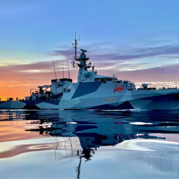 According to information published by the UK government on January 6, 2023, the Royal Navy’s offshore patrol vessel, HMS Tamar, sails to the Andama...