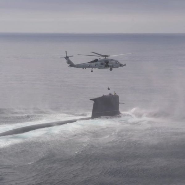 US Navy's MH-60R Seahawk helicopter conducts hoisting exercise with Chilean submarine CS Carrera