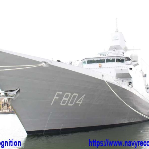 At the DSEI 2023 defense and security event in London, the Royal Netherlands Navy displayed its modern frigate, the HNLMS De Ruyter.