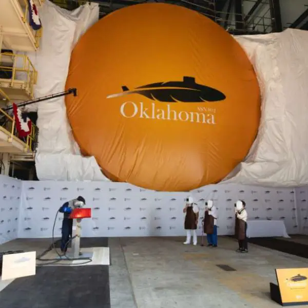 Keel authentication ceremony held for Virginia-class submarine Oklahoma