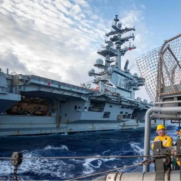 Navy's aircraft carrier USS Ronald Reagan refuels cruiser USS Antietam in South China Sea