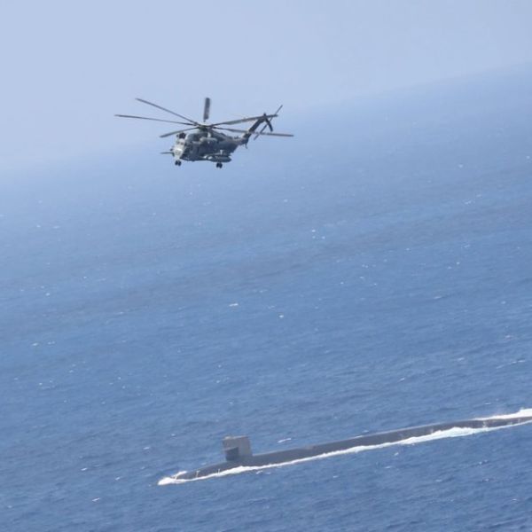 US Marines resupply Ohio class submarine USS Maine in Philippine Sea