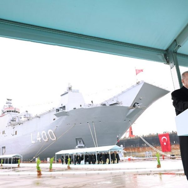 Turkish president Erdogan commissions amphibious assault ship TCG Anadolu