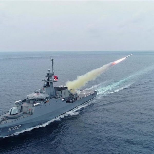 Thai Krabi class OPV HTMS Prachuap Khiri Khan fires Harpoon missile