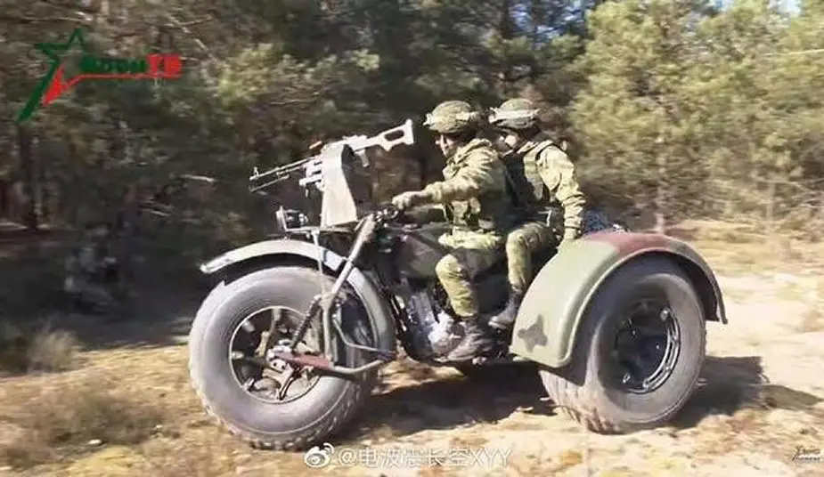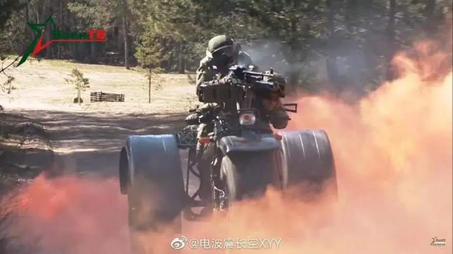 Belarusian trike under test. The driver has to take a rather difficult position to enable his teammate to fire the machine gun. Unrealistic, isn't it? (Picture source : screenshot from Chinese TV)