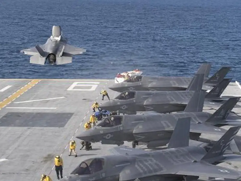 Five F-35Bs shown here on deck and taking off from the USS America during F-35B Development Test III (DT-III) (Picture source : Lockheed Martin)