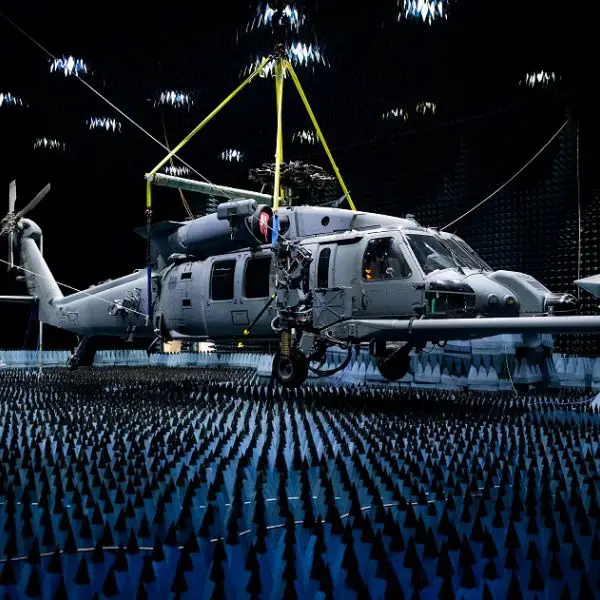 The US Air Force’s newest combat rescue helicopter was suspended in a soundproof chamber at the Joint Preflight Integration of Munitions and Electr...