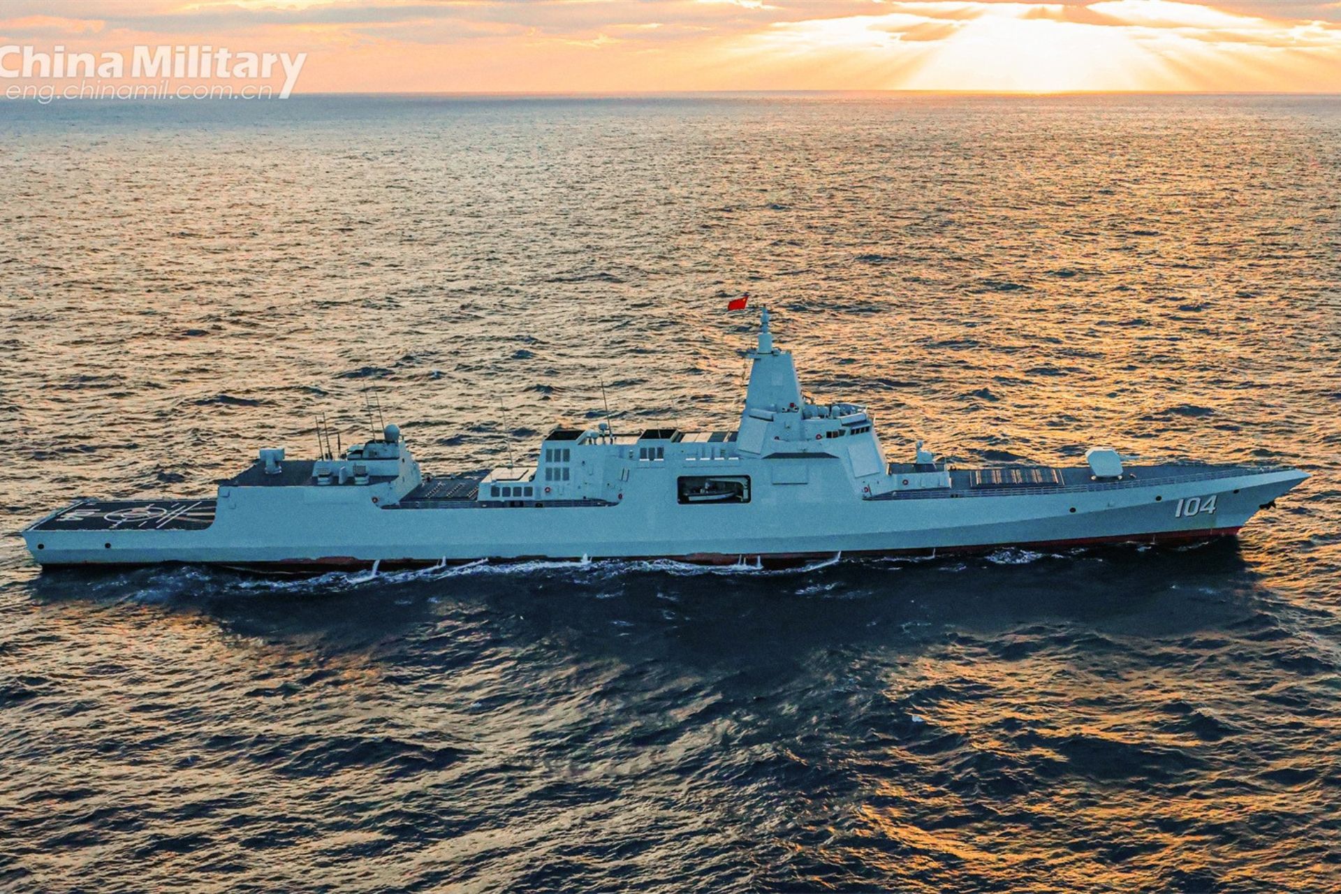 Type-055 guided-missile destroyer Wuxi attached to a unit with the navy under the PLA Northern Theater Command steams to the designated sea area during a maritime training exercise recently (Picture source: Chinese MoD)