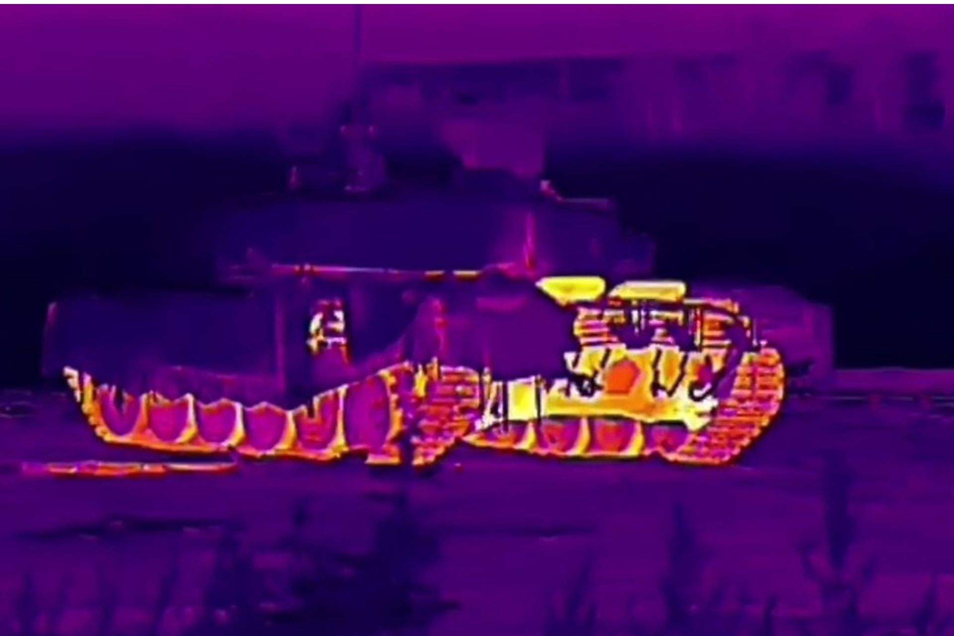 Thermal signature of the T-90M main battle tank when equipped with the Nakidka thermal camouflage (Picture source: X Channel @GarupanH)