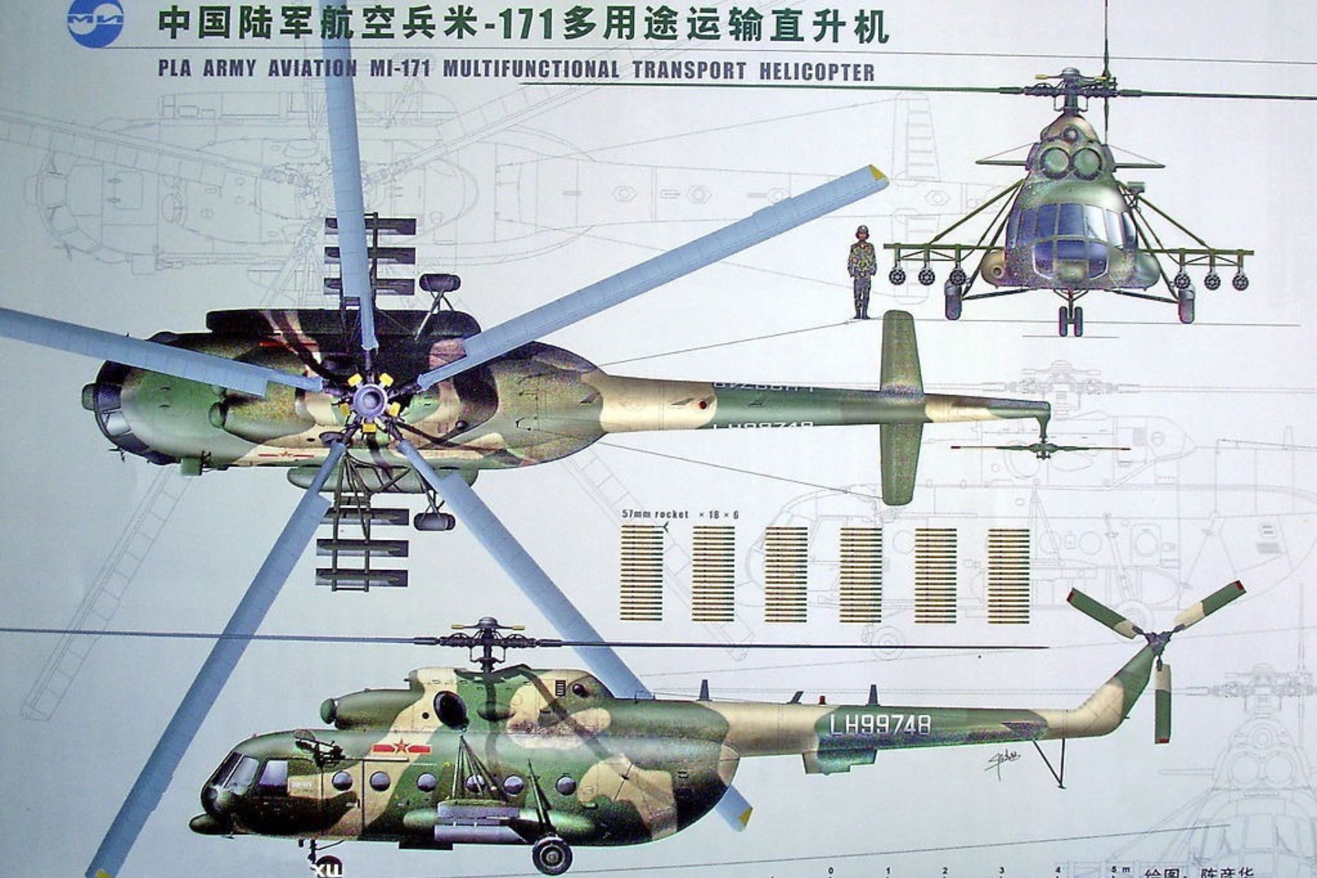 Pictured above is a Chinese Mi-171 armed with 108 57mm rockets distributed in 6 rocket pods (Picture source: Chinese Army)