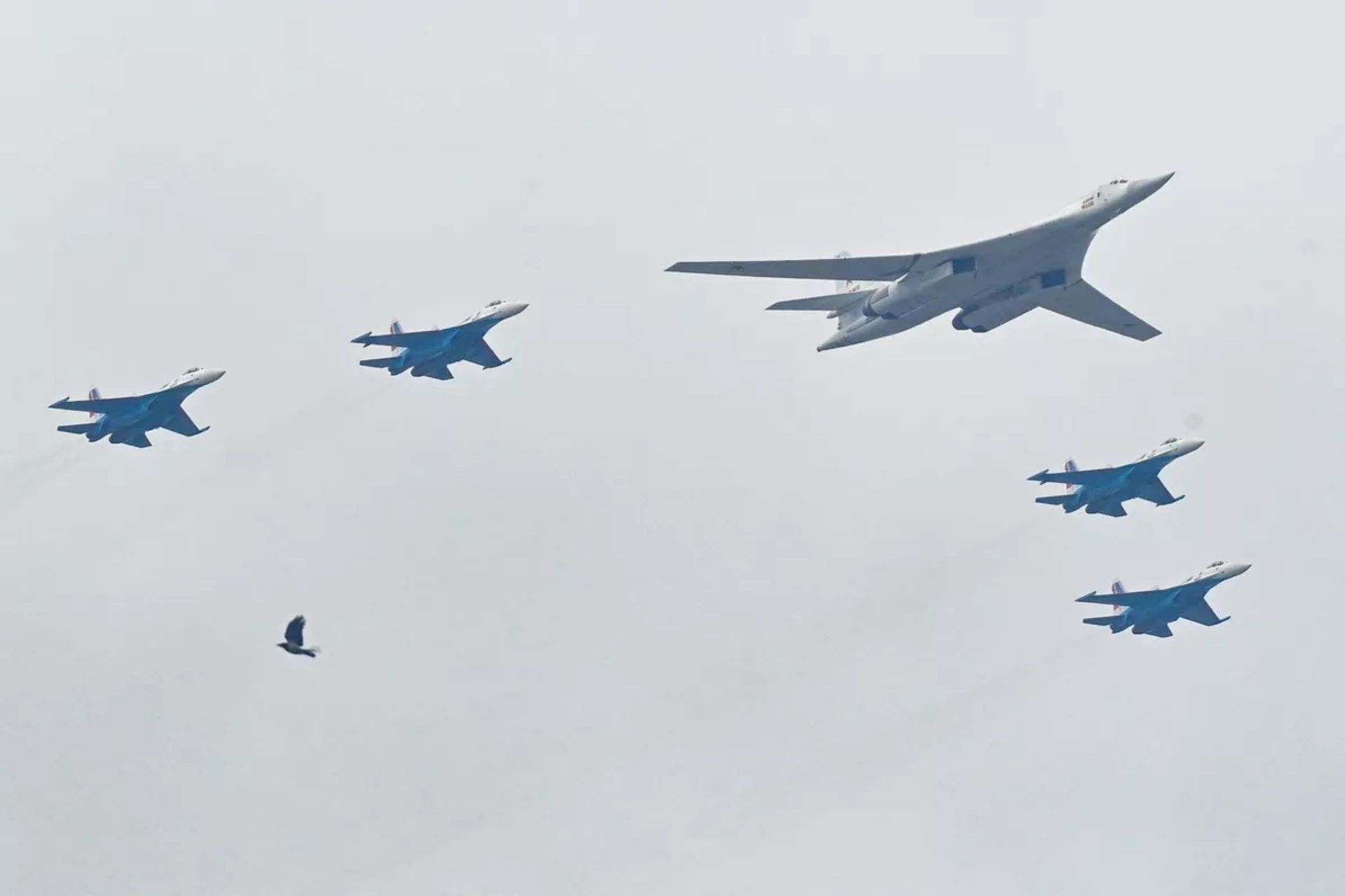 A Tu-160 bomber escorted by Su-35S fighters in 2021 over Red Square. ( Picture source : Kirill Kudryavtsev)