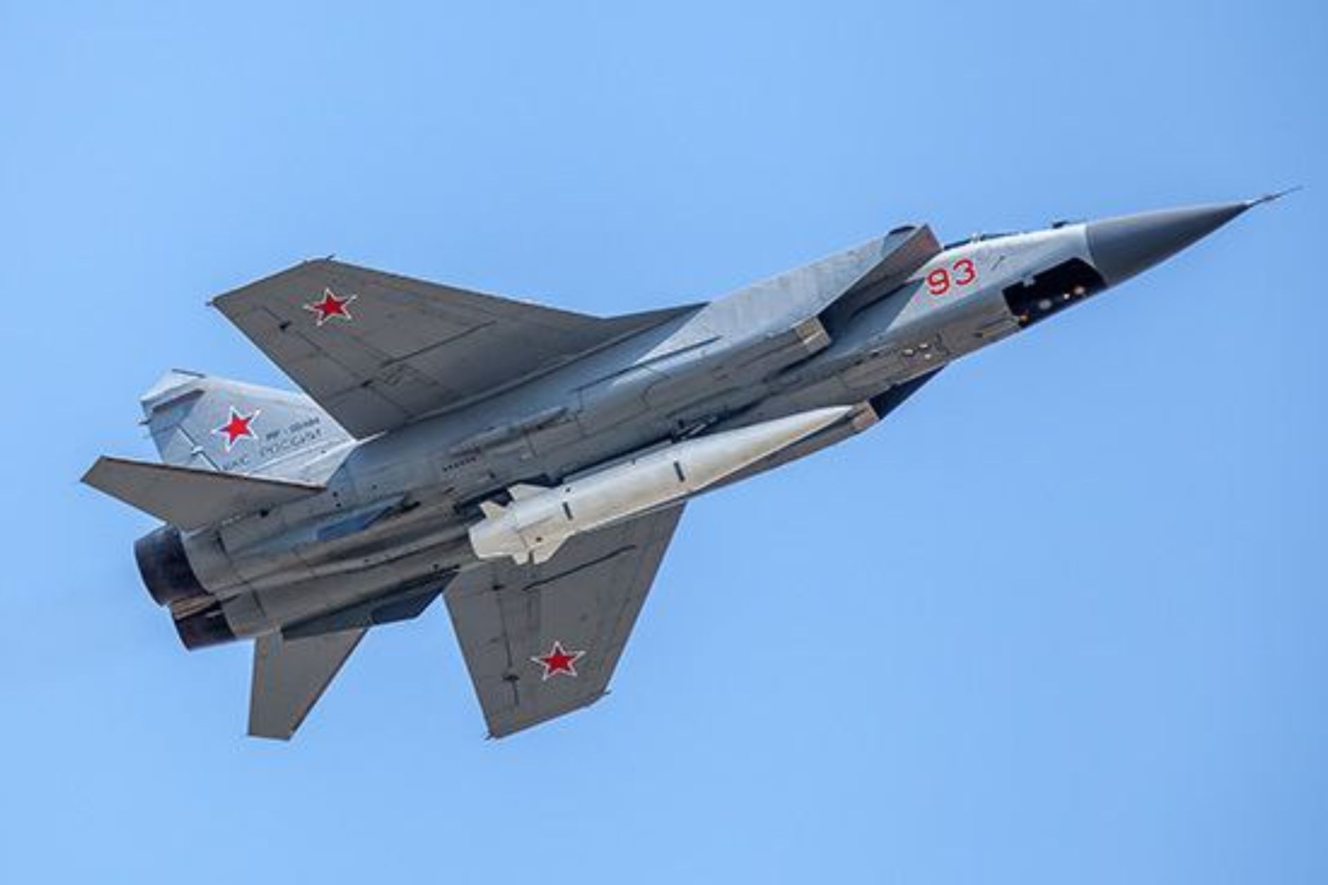 A Kinjal missile is carried by a Russian MIG-31K from an unknown location ( Picture source : Russian Defense Ministry Press Service)