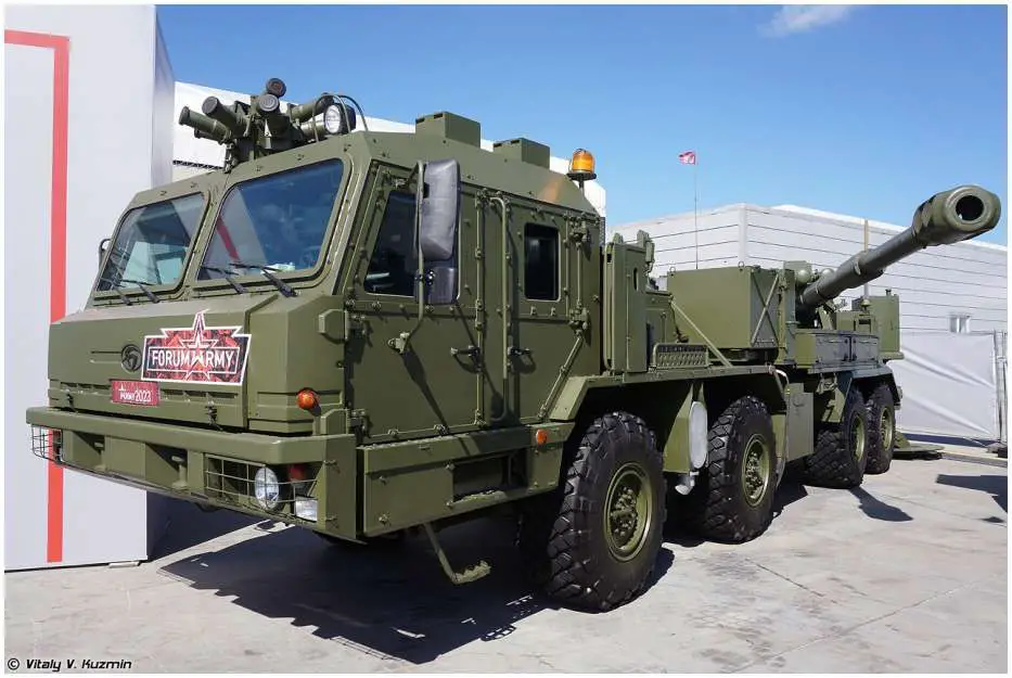 The Malva is equipped with a 152mm 2A64 rifled gun, capable of firing up to 24.5 kilometers with a 30-round ammunition storage capacity. Its gun elevation range is -3° to +70°, with an azimuth of ±30°, providing significant versatility in targeting (Home) (Home). The wheeled design allows for rapid deployment and operational flexibility across diverse terrains, making it a valuable addition to Russia's artillery arsenal.