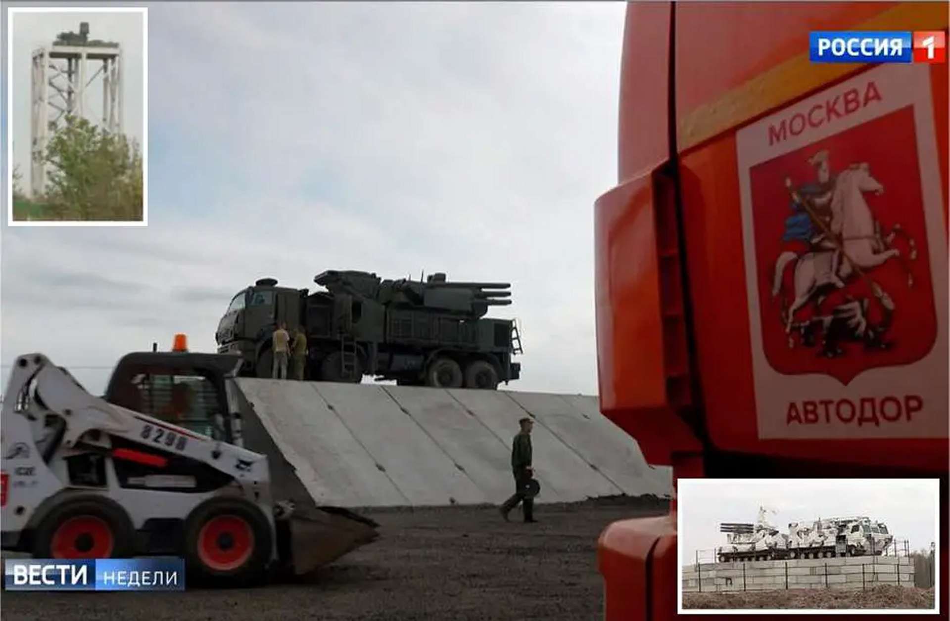 The construction of fortified embankments and towers constructed from metal or reinforced concrete in the Moscow regions prompted the relocation of Pantsir-S1, Pantsir-S2, and Arctic-specific Pantsir-SA air defense systems. (Picture source: Russian social media)