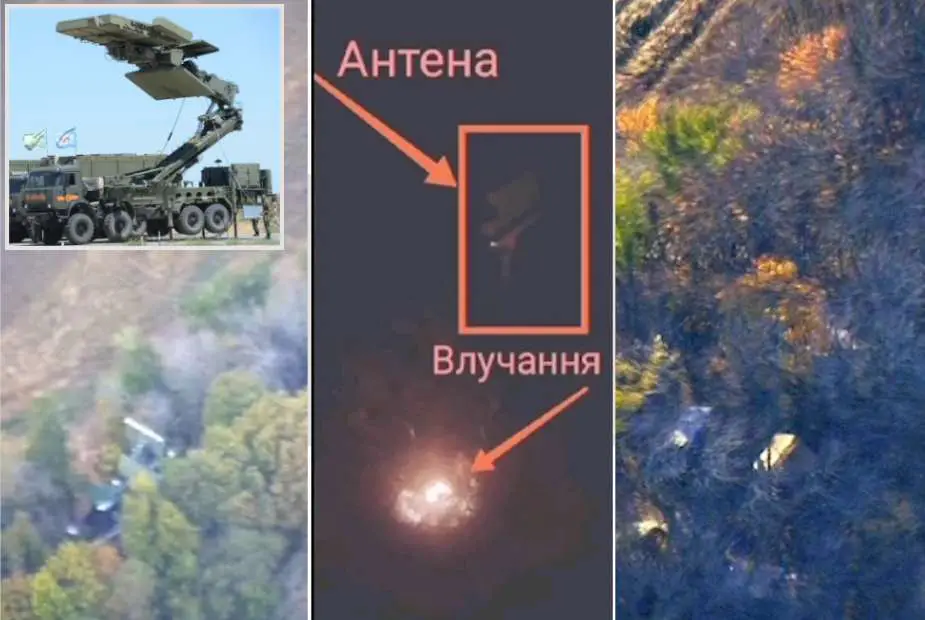 Ukraine destroyed the Podlet-K1 mobile radar system, used to detect air targets at low and extremely low altitudes, with a drone strike. (Picture source: Ukraine MoD and Yandex)