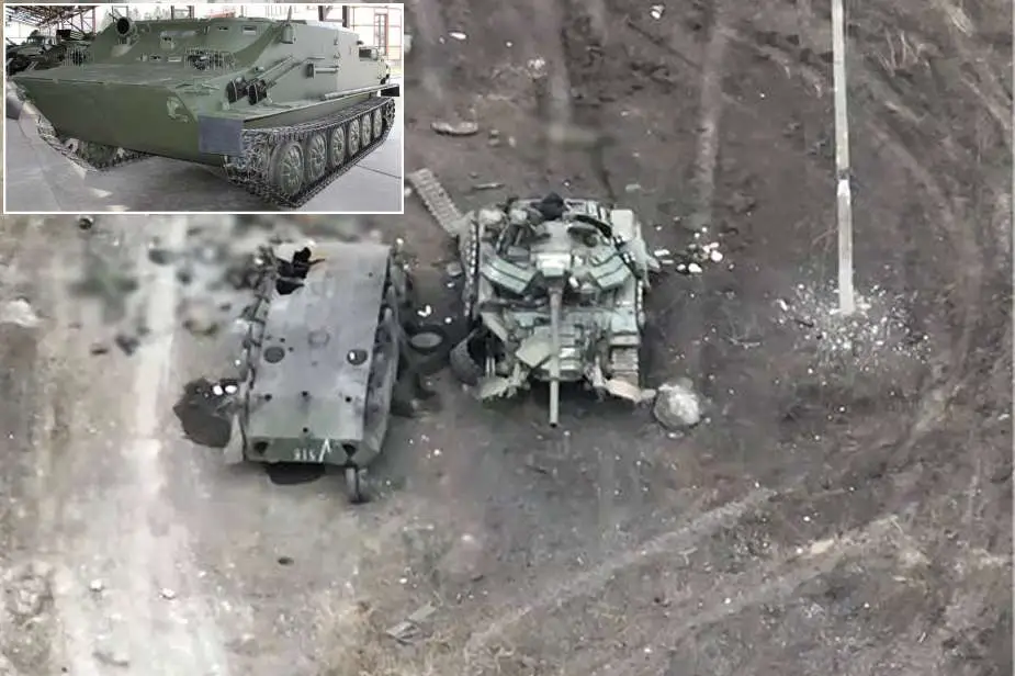 Ukrainian Forces destroyed a Russian BTR-50P armored personnel carrier, along with a T-64BV tank, near Avdiivka, a city located in Ukraine's Donbas region (Picture source: Telegram and Wikimedia)