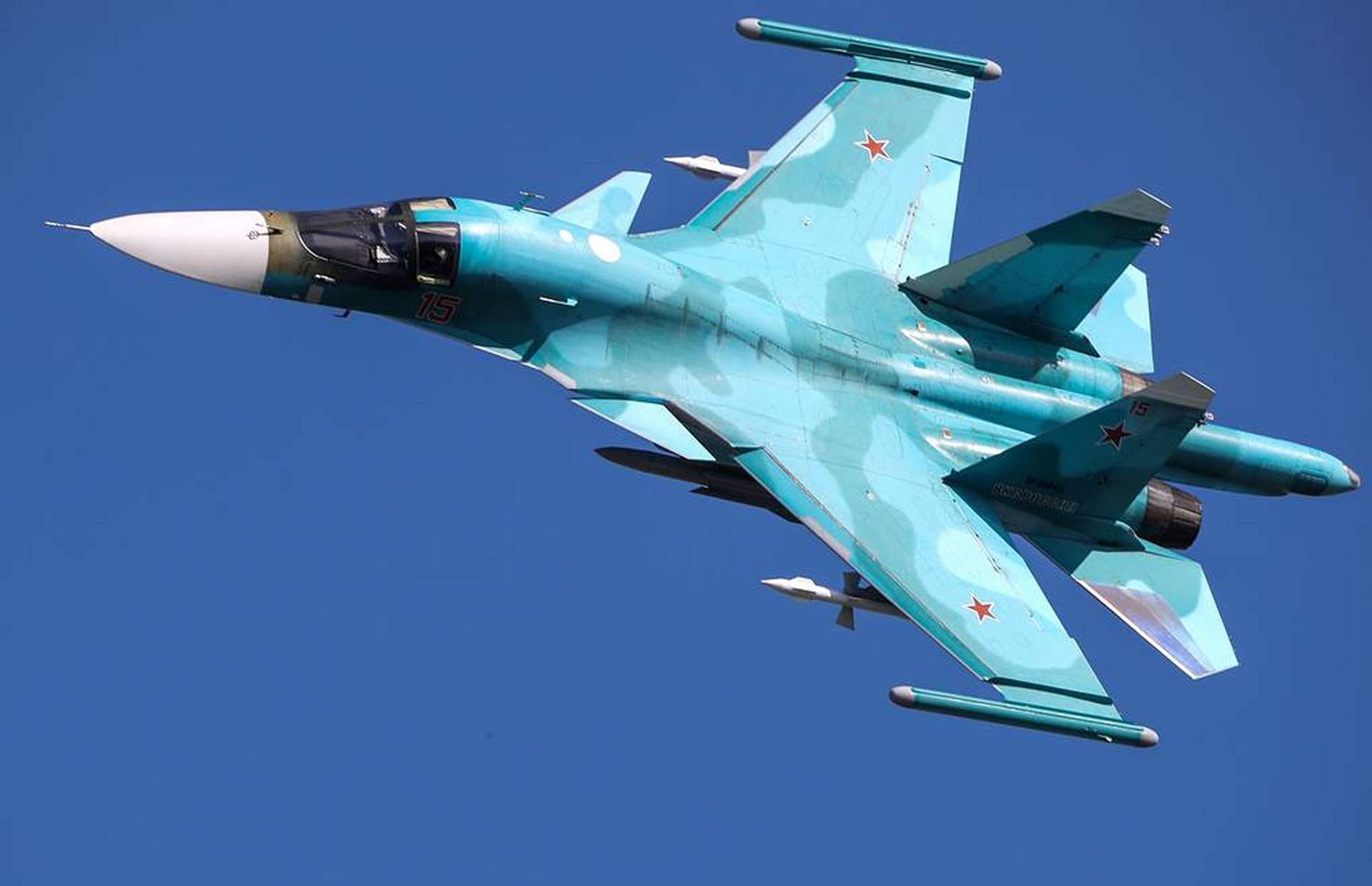 The Su-34, known to NATO as Fullback, is Russia’s primary tactical strike jet for medium-range precision and near-precision attacks. It is a twin-engine, two-seat aircraft with side-by-side crew seating that simplifies workload during complex bombing profiles. The jet can carry more than eight tons of ordnance on twelve external hardpoints and is powered by AL-31 series turbofans, which provide it with solid dash performance and useful endurance. Its avionics suite combines a multimodal radar for air-to-ground mapping with navigation systems that support low-visibility operations. Survivability is helped by the Khibiny electronic warfare suite, radar warning receivers, and chaff and flare dispensers, though the airframe’s protection ultimately depends on tactics and distance from the threat.