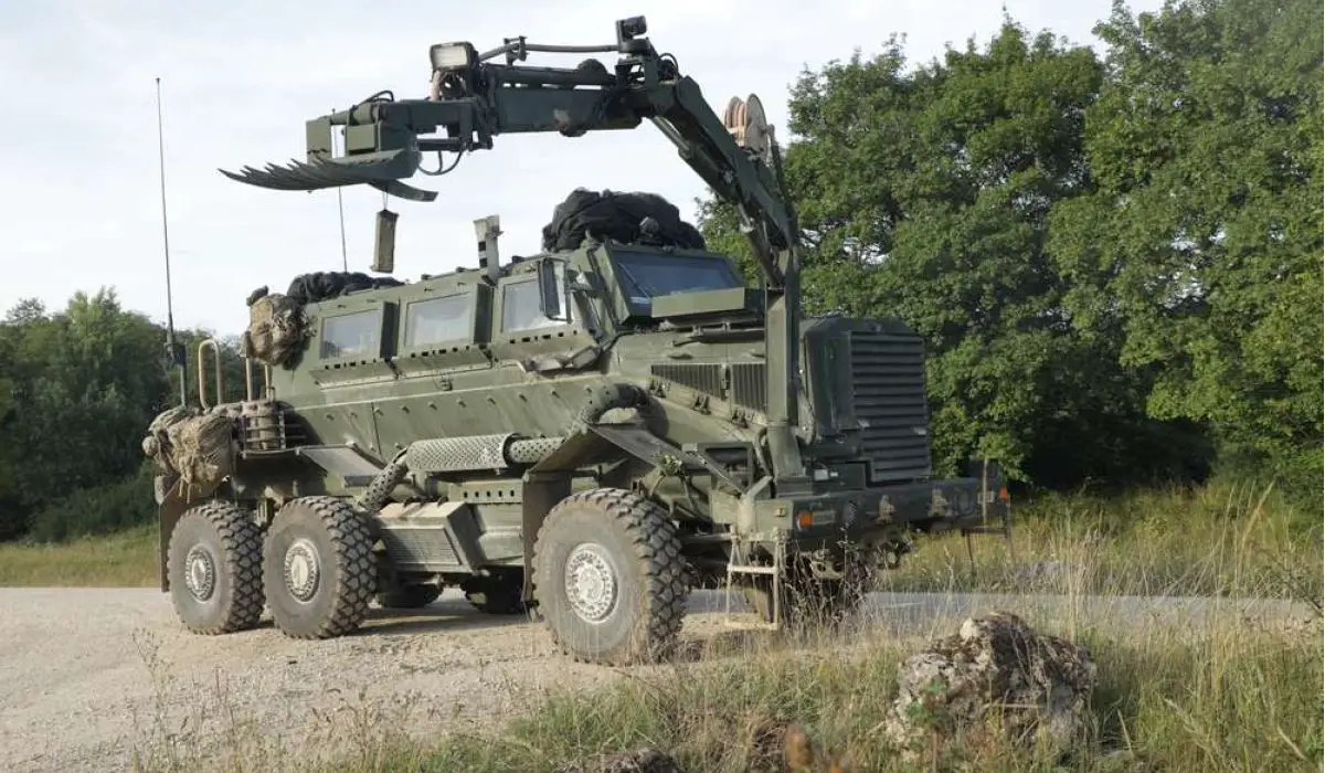The Buffalo MPV’s defensive features include heavy armor that provides protection against 7.62mm ammunition and rocket-propelled grenades (RPGs), as well as its V-shaped hull designed to reduce the impact of blasts. Additionally, the vehicle is equipped with a 9.1-meter-long articulated arm for handling and disposing of explosives, which can be operated remotely from within the vehicle, enhancing crew safety during bomb disposal operations.