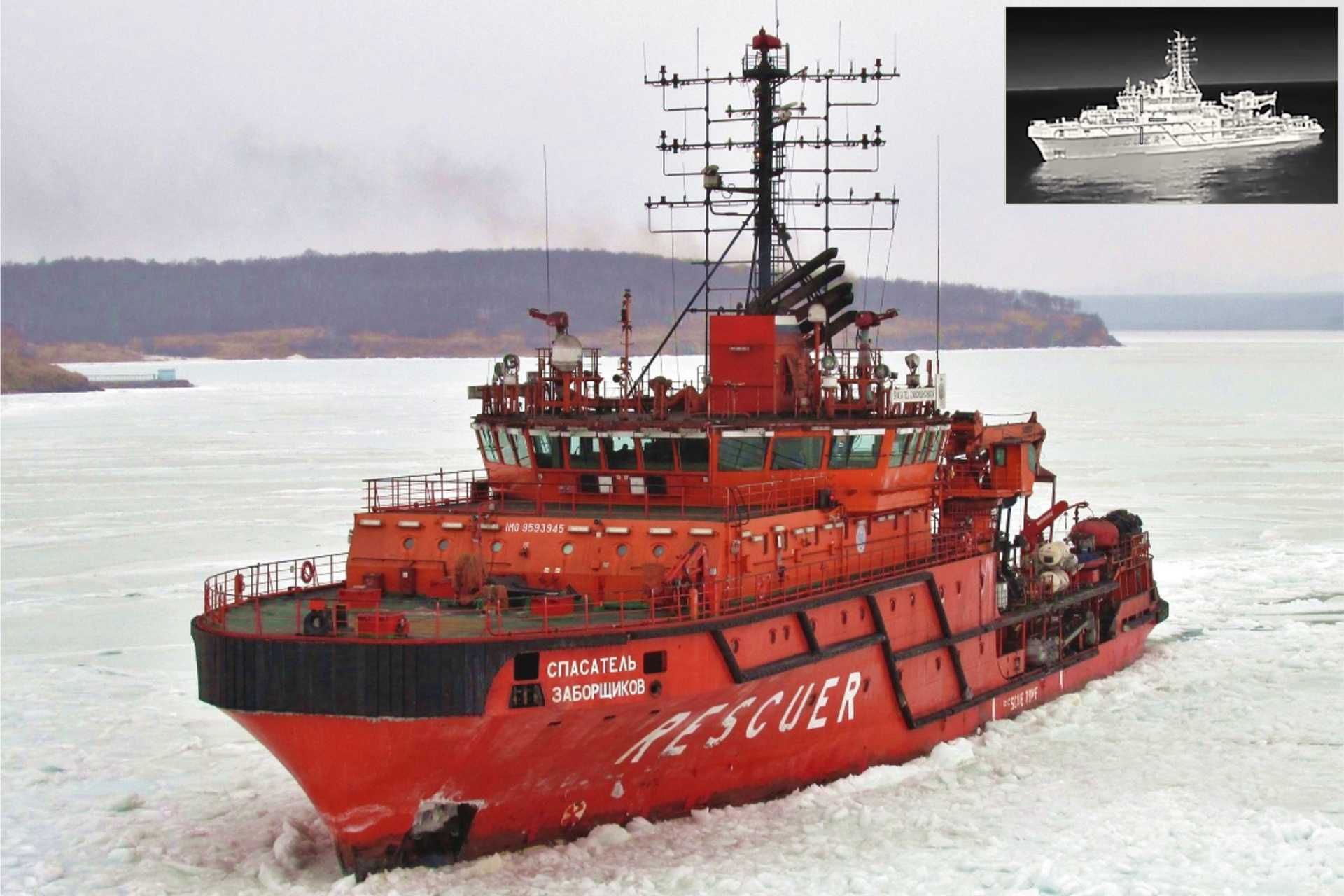 The Project MPSV07 series of multipurpose salvage ships was developed by the Marine Engineering Bureau and built at Russian shipyards, including Nevsky Shipyard in Shlisselburg and the Zalyv Shipbuilding Yard in Kerch. These vessels are ice-strengthened to RS Arc5 standards and designed for unlimited navigation areas, including Arctic routes. They are intended for a wide range of functions, such as search and rescue, salvage, towing, firefighting on ships and burning fuel on water, oil spill containment and recovery, and technical underwater operations. They can support diving operations to depths of 300 meters and seabed inspections of damaged objects down to 1,000 meters using side-scan sonar and remotely operated vehicles. The vessels are equipped with dynamic positioning systems meeting DYNPOS-2 standards, stabilizing systems for sea states up to level 4, and oil recovery systems integrated into the hull design.