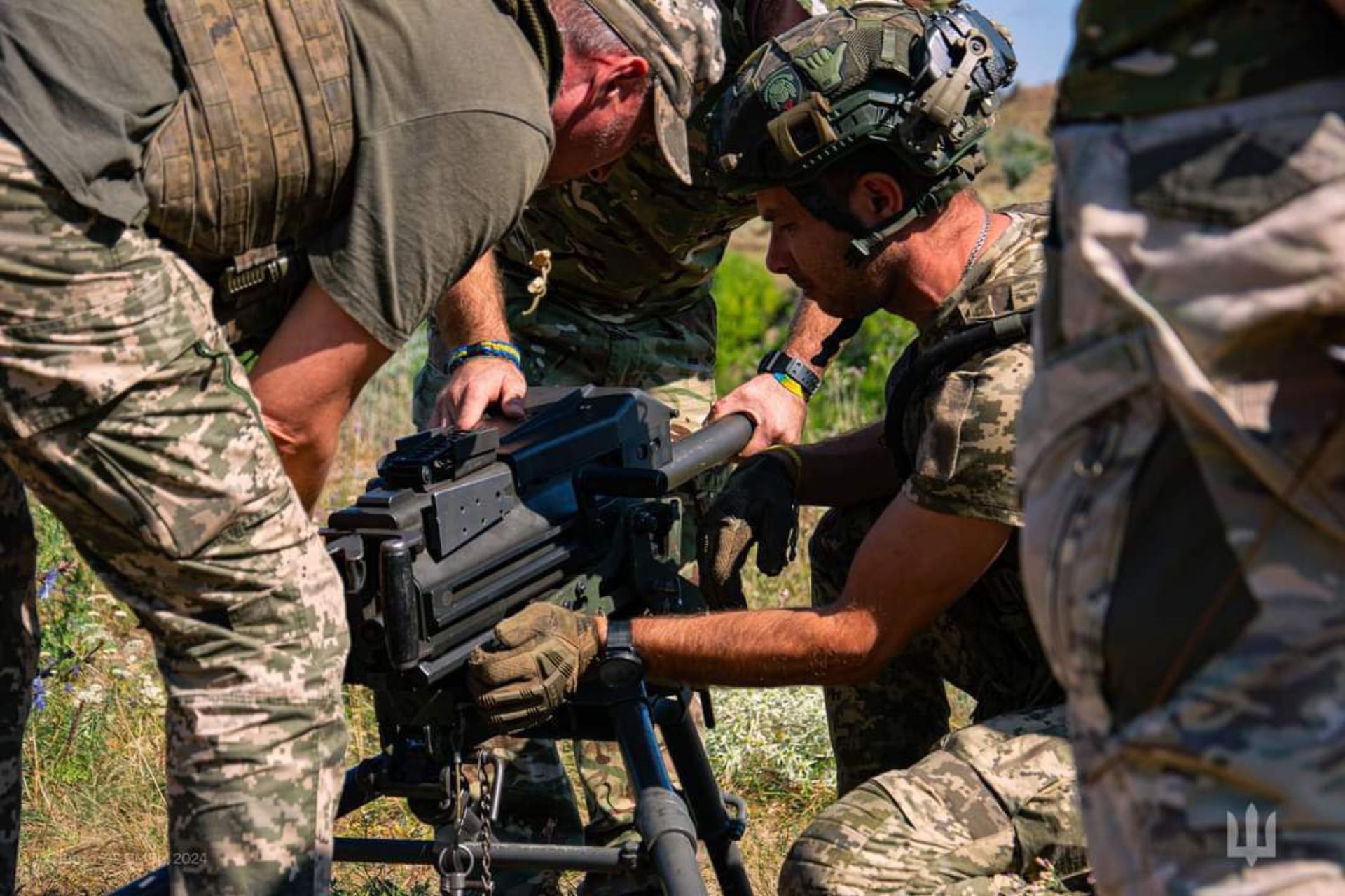 The soldiers of the 32nd separate mechanised brigade are training on the MK-19, US made grenade launcher. ( Picture source: Ukrainian MoD )