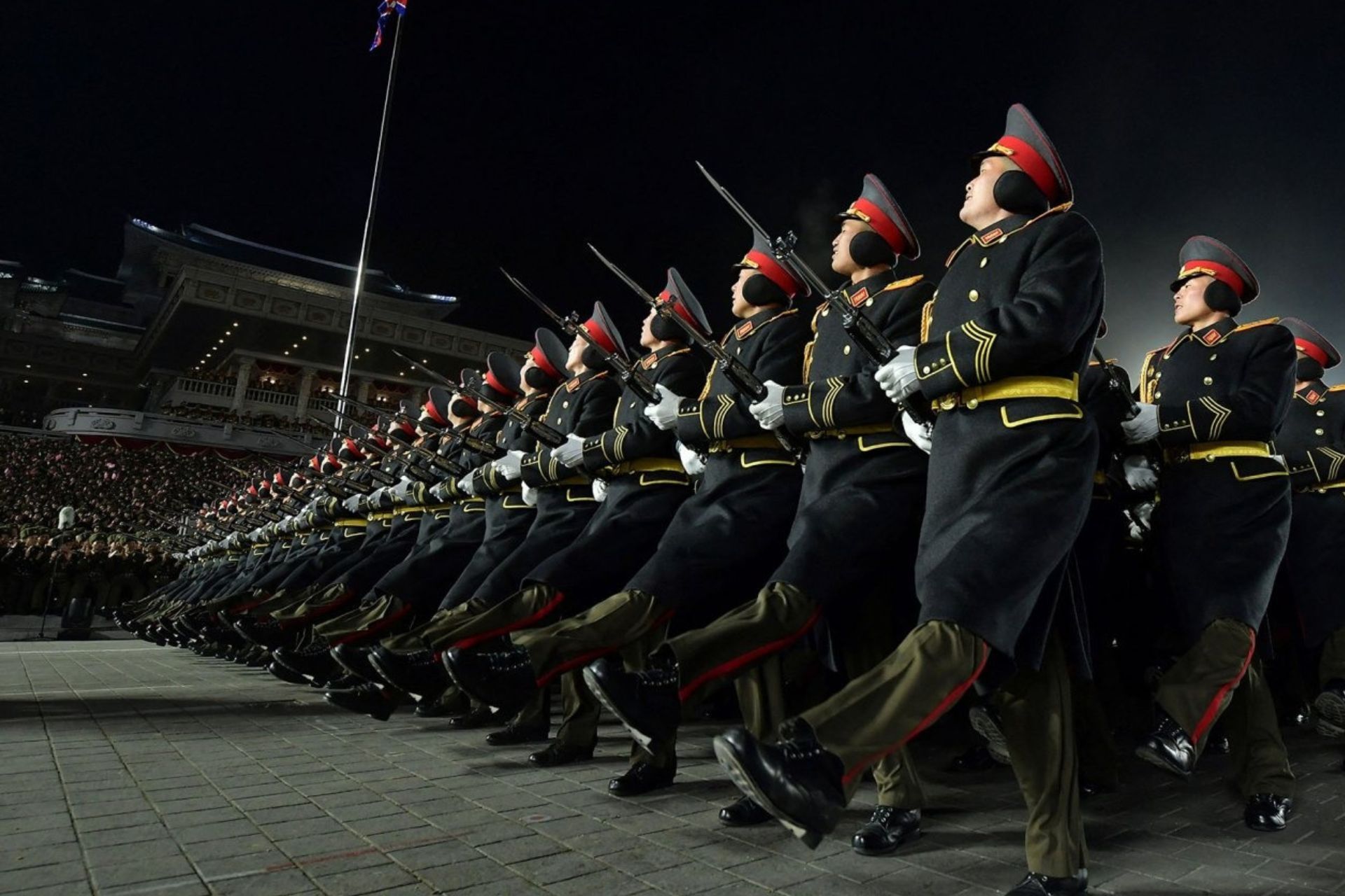 Soldiers march during a military parade commemorating the 75th anniversary of the founding of North Korea's army at Kim Il Sung Square in Pyongyang, North Korea, on February 8, 2023 (Picture source: KCNA)