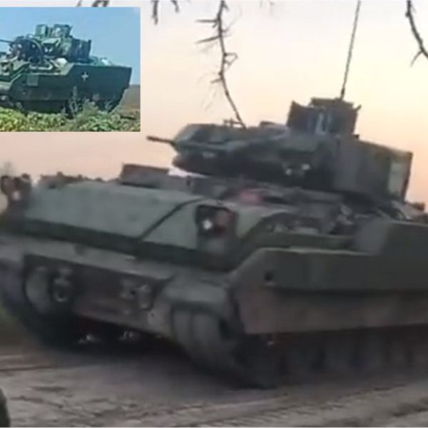 According to a Telegram post by NMFTE on July 22, 2023, a Ukrainian M2A2 Bradley, equipped with the BRAT (Bradley Reactive Armour Tiles) dynamic pr...