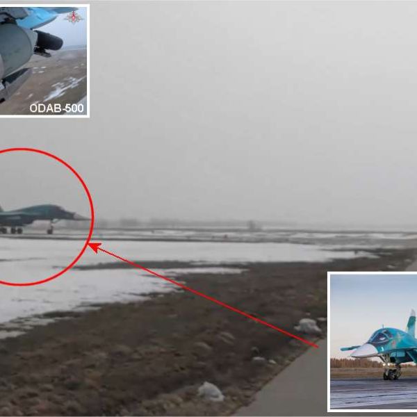 Russian Su-34 Bomber Targets Ukrainian Positions with New Guided ODAB-500 Thermobaric Bombs