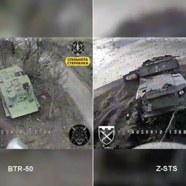 Ukrainian FPV drones hit both old BTR-50 and modern Z-STS Russian armored vehicles