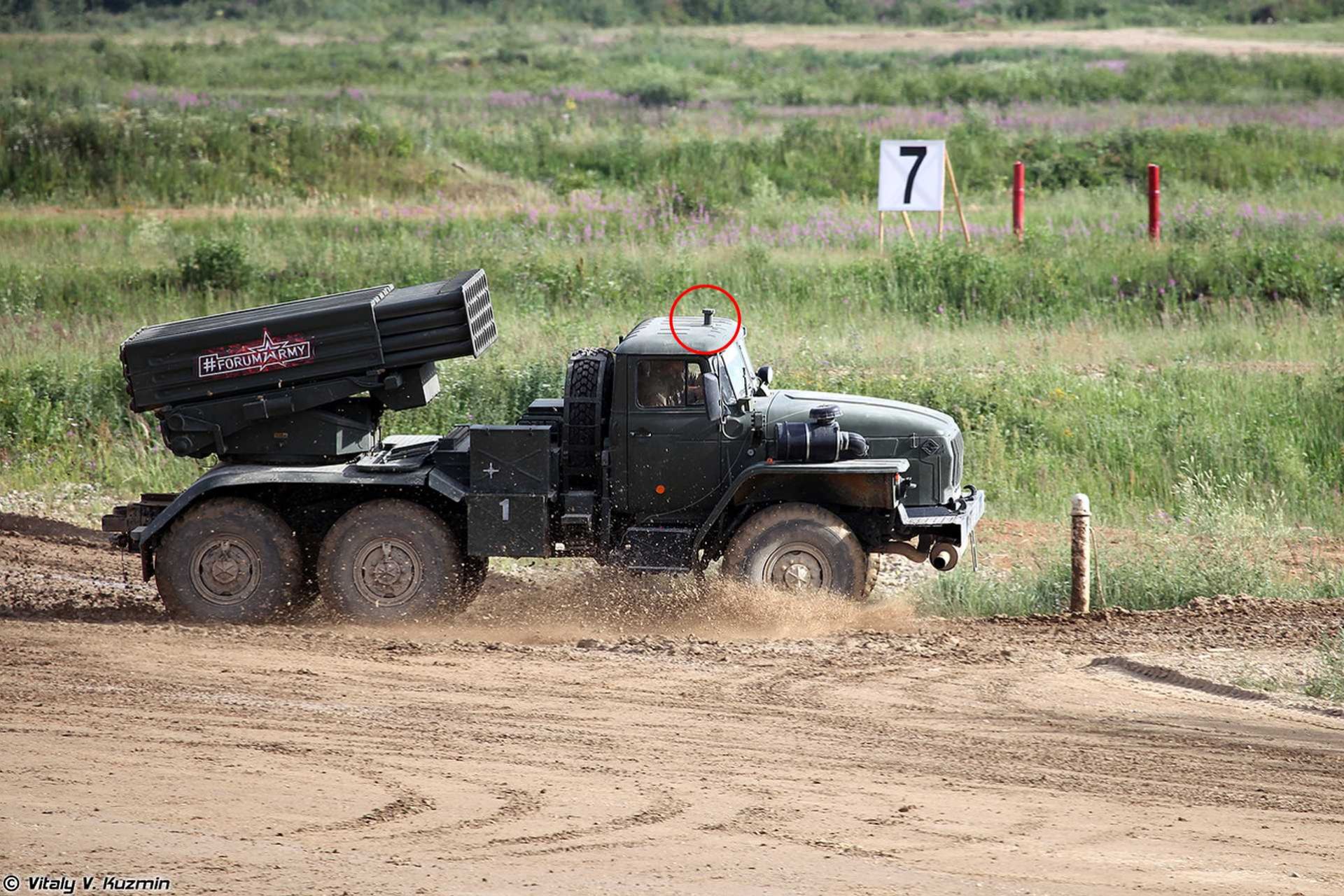 A Russian Tornado-G MLRS with a visible GPS satellite antenna mounted on the crew cab roof, showcasing its advanced navigation and automated fire control capabilities. (Picture source: Vitaly Kuzmin Blog)