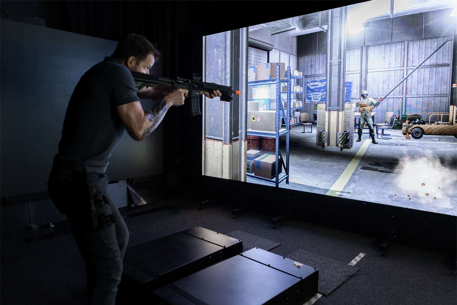 At Booth 10.0-353 in Hall 10, visitors experienced a live demonstration of the SAMT in action. The simulator offers an immersive training environment complete with a sound floor, dynamic cover devices, and weapon replicas outfitted with a patented SAS module compatible with Picatinny rails. Complemented by a large LED screen displaying realistic scenarios rendered by the proprietary GUARDTM Engine, the setup provides a comprehensive proving ground for operatives to refine both tactical and marksmanship skills.