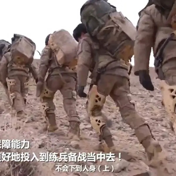Chinese army PLA border troops in Tibet receive exoskeleton